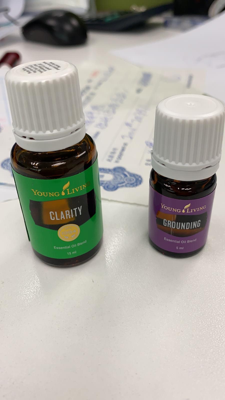 精油配方會使用Clarity及Grounding, 兩支精油分別各一滴搽額頭及兩邊太陽穴。而上堂前一定要飲一包寧夏紅,提昇腦循理,思考及吸收更加快。